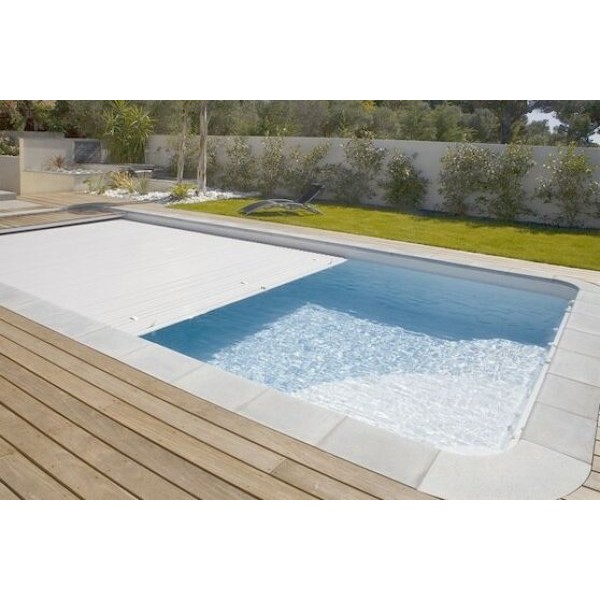 Cette couverture automatique est un modèle dont le moteur est logé dans l'axe.Elle couvre des piscines jusqu'à 12 x 8 m.